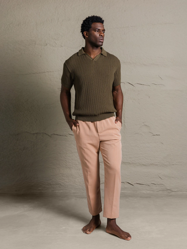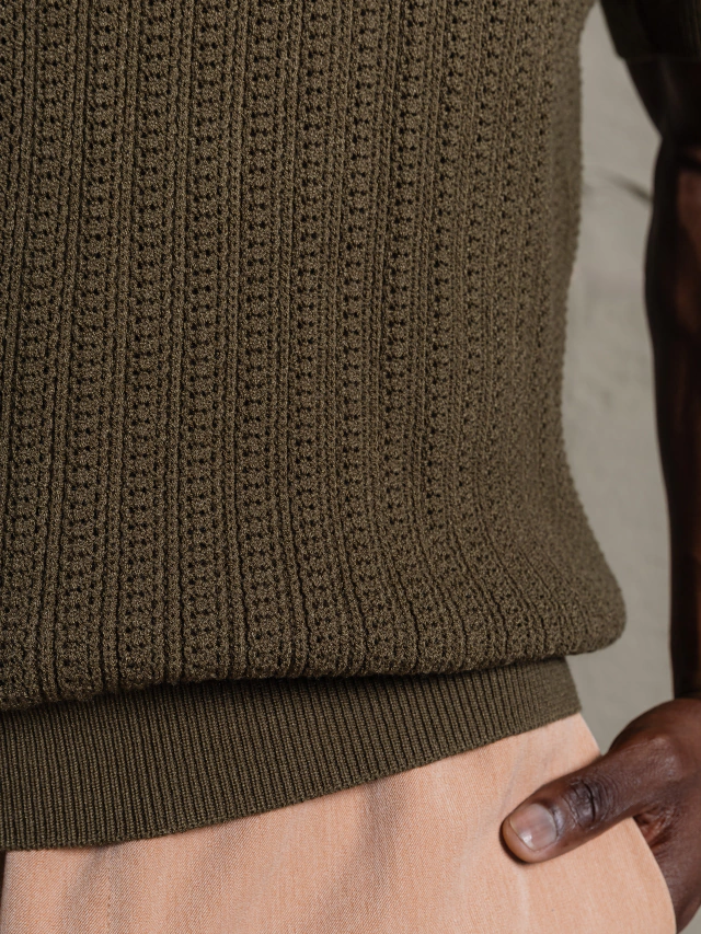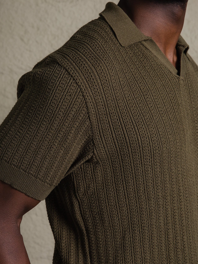 Polo tricot texturizada é confeccionada em modal turim, oferecendo conforto e leveza. Com uma textura trabalhada, os fios dessa técnica são combinados a fim de proporcionar frescor e sofisticação a peça.