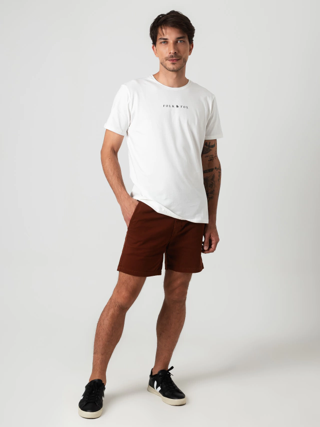 Shorts sarja. Modelagem slim fit. Caimento ajustado ao corpo. Cós com elástico conferindo conforto e praticidade. Bolsos frontais e bolso traseiro. Fecho frontal com zíper e botão. 98% algodão | 2% elastano
